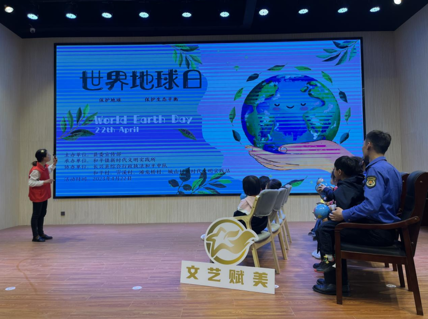 霅溪村、和平村等manbetx安卓手机 礼堂志愿者联合县综合行政执法局在和平村开展“世界地球日,萌娃来行动”活动。志愿者们介绍世界地球日的由来和意义,展示环境污染对地球带来的危害,宣传普及节约利用资源、保护自然生态、倡导绿色简约生活等保护地球的相关知识。