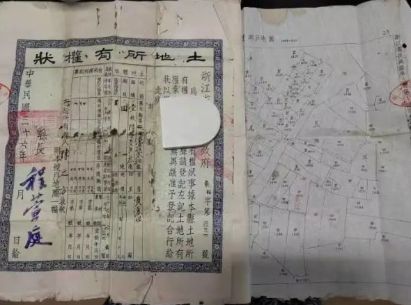 近日,长兴县龙山街道涧塘村退休老同志周伯年将其收藏多年的《土地所有权状》等文献资料捐赠给县档案馆,这些满载岁月风霜、沉甸甸的纪实文件成为县档案馆的重要藏品。