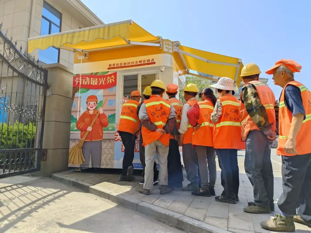 在勤劳社区党总支书记的牵头下,新时代文明实践站的志愿者们通过精心打造,将不用的核酸检测房“变身”成“惠工小屋”,为集镇环卫工人们、保洁员等提供休息的站点。