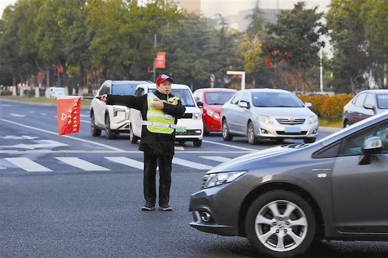 张根保在参加“爱心护导”志愿值勤