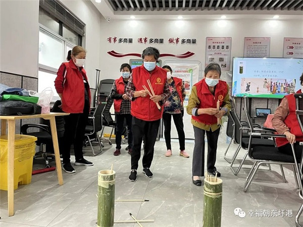 首先,社工带领村民们通过PPT和小视频了解了端午节的由来和传说,以及龙舟竞渡、吃粽子、喝雄黄酒、挂艾叶菖蒲、佩香囊等等的端午风俗。志愿者们还准备了中华传统游戏——投壶,带领村民朋友们领略这一古老游戏的魅力,投壶游戏深受阿姨们的喜爱,她们个个精神抖擞,跃跃欲试,参与积极性极高,整场活动欢声笑语不断。