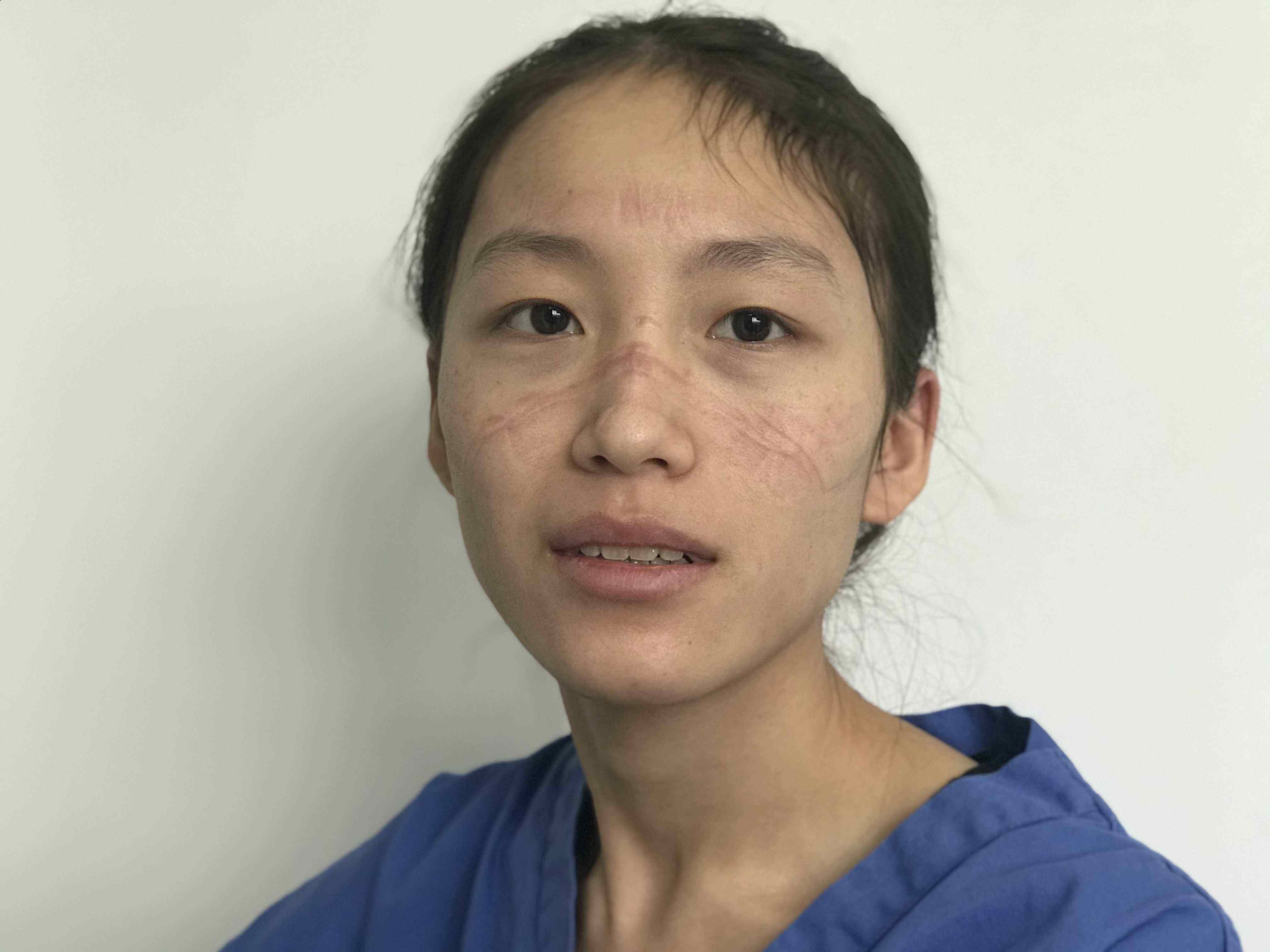 口罩、护目镜每次带久了就会压得脸上生疼,摘掉以后就会留下深深的红色印痕。常常一个晚上过去,鼻梁的印痕仍旧没能够消退,第二天又得接着上岗。各种困难迎面而来,但她并无退缩常念肩上的责任、同事的信任,她学会了迎难而上将博爱奉献给患者,呵护患者的健康。同时她树立正确的世界观、人生观、价值观,坚定跟党走中国特色社会主义道路的理想信念,于20202月递交入党申请书,努力在党组织中得到进一步淬炼。