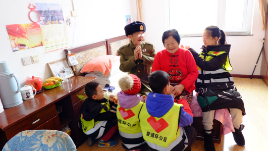 “看到你们来我特别开心,就像看到亲人一样。儿女们工作忙也没时间过来,谢谢你们还想着我们,也希望你们在新的一年里工作顺利、学习进步。”78岁的徐桂兰和志愿者们亲切交谈,说今年已经是她来服务中心养老的第四年,已经把这里当家了,平时组织大家一起唱歌跳舞,生活的很快乐。