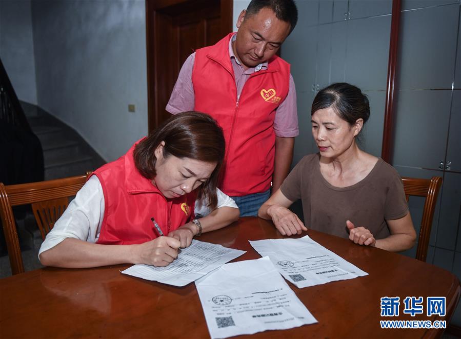 6月20日,长兴县洪桥镇便民服务中心的党员志愿者将代办好的“生育登记服务单”为百姓送上门。新华社记者 徐昱 摄