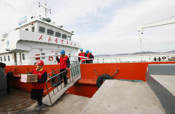 船的另一头连接的是在各个偏远海岛的留守老人。这艘海缆管理船于2018年首次下海岛送服务。4年来,风雨无阻,“乘风破浪—载光泗海”志愿服务团队以船为媒,定期为老人提供服务,搭建起海上流动服务平台。